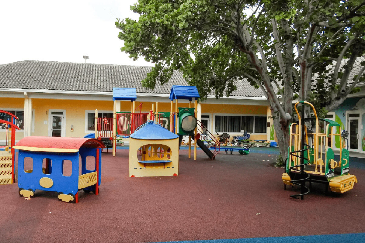 KID Preschool PLUS has an outdoor playground equipped with rubber play flooring, protective fences, and well-maintained grounds to ensure the children’s safety.